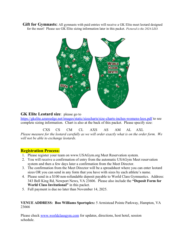 A leotard for every registered gymnast!